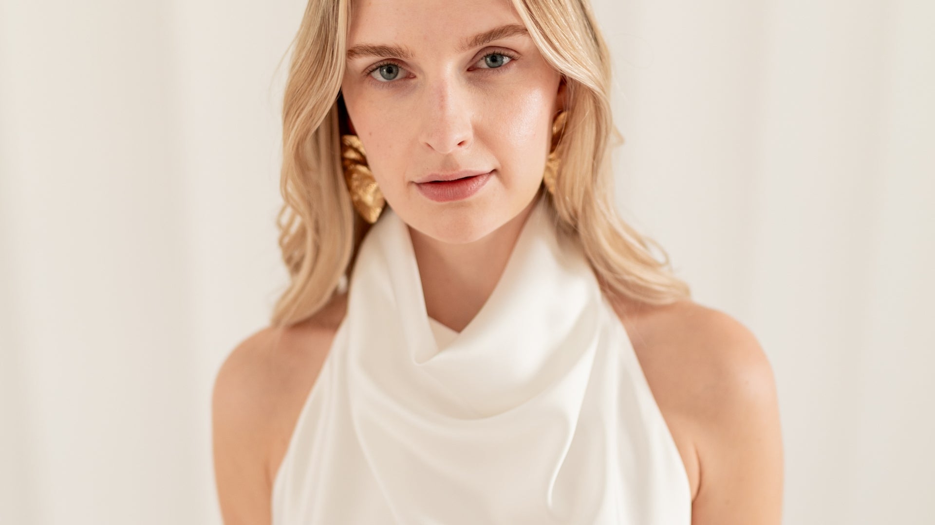 CELIA pastel cream X neck midi dress